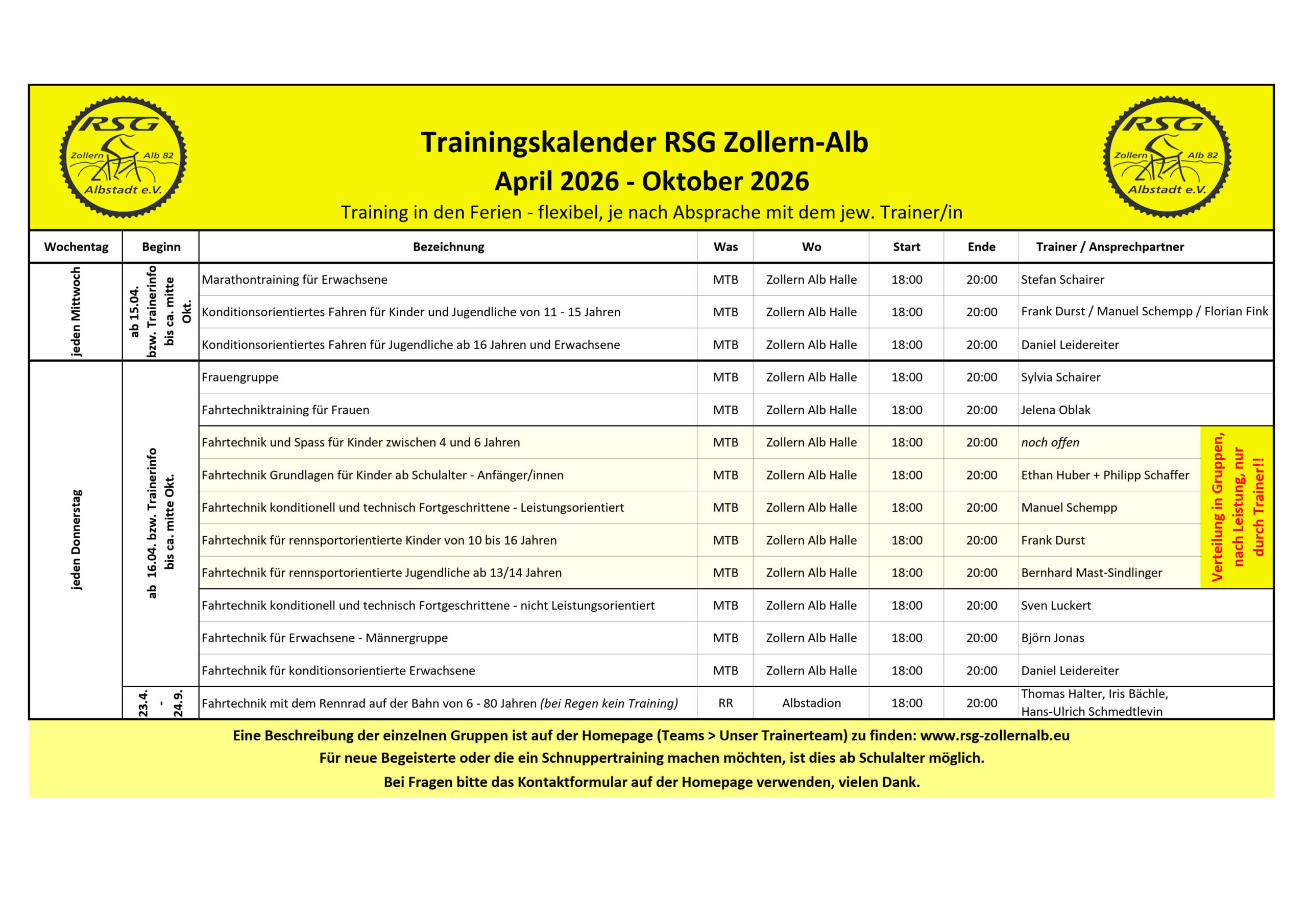 Weitere Informationen zu unseren Trainingsgruppen und Trainern findet ihr auf der Seite unseres Trainerteams.